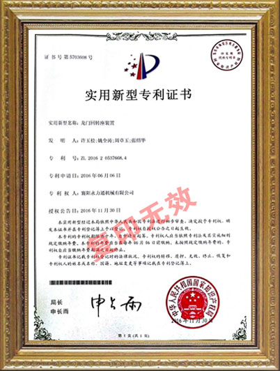 • 龍門回轉(zhuǎn)座裝置新型專利證書