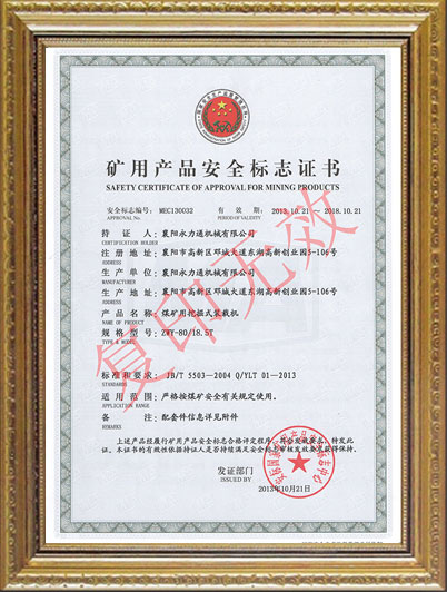• ZWY/80/18.5T礦用安全證書