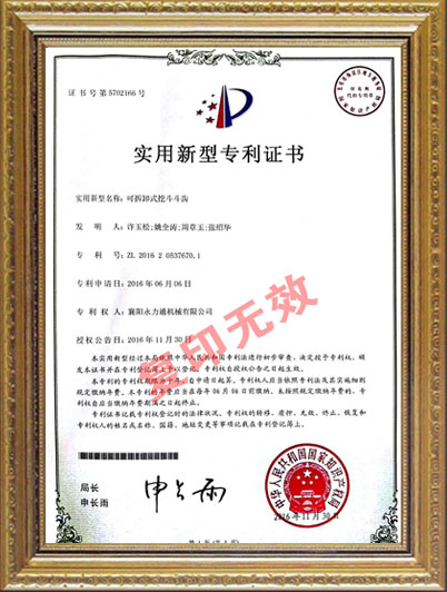• 可拆卸式挖斗斗齒新型專利證書